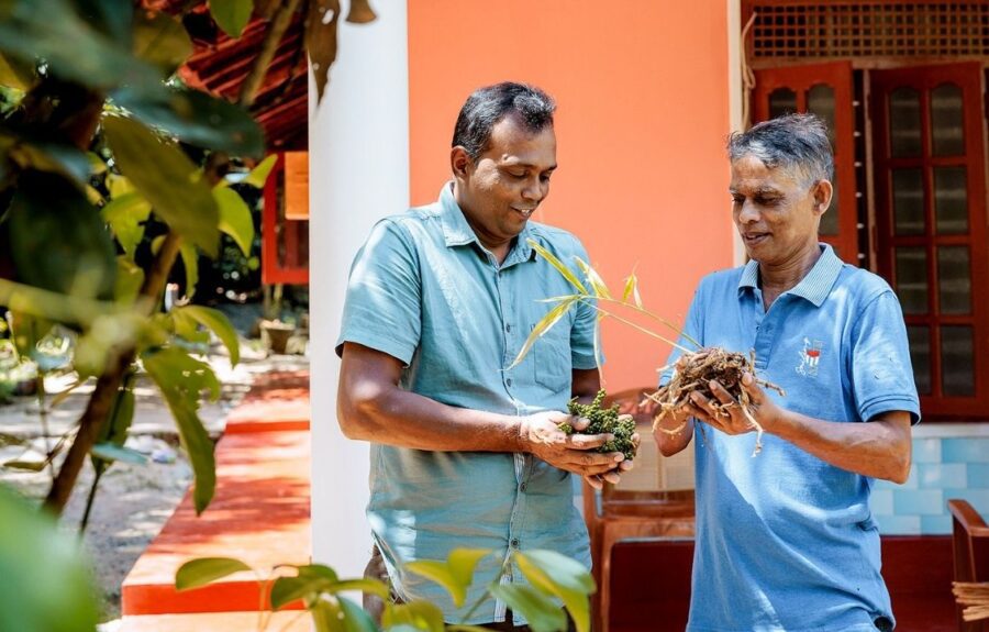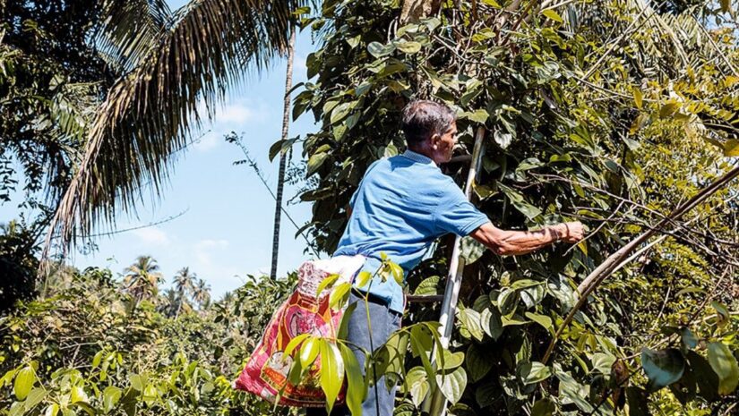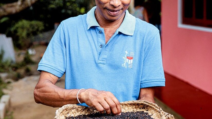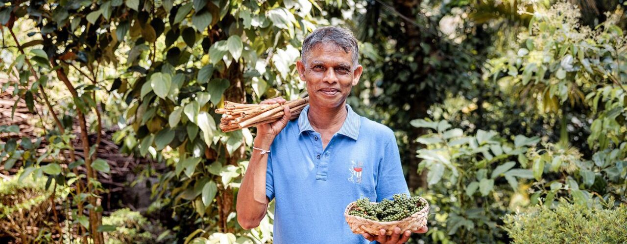 Kräftige Waden – die hat Cyril auf jeden Fall. Um zu seinem Zimt- und Pfefferfeld zu gelangen, muss er einen schmalen, steil ansteigenden Pfad eine halbe Stunde bergauf laufen. Das war nicht immer so: Cyril Jayawardena arbeitete viele Jahre lang als Field Officer für eine staatliche Organisation, die landwirtschaftliche Dienstleistungen für Bauerngruppen anbietet. „Neben meiner Arbeit als Field Officer hatte ich bereits ein kleines Stück Land, auf dem meine Frau und ich Gewürze zum Verkauf anbauten. Irgendwann haben wir einfach beschlossen, ganz auf die Landwirtschaft zu setzen.“ Mit dem nötigen Wissen im Gepäck bewirtschaftet Cyril heute sein Feld – hoch oben in den Bergen von Pallemulla.