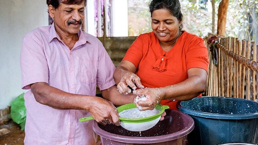 Gibt es Herausforderungen? „Auf dem Hof gibt es immer genug Herausforderungen, aber gemeinsam finden wir auch Lösungen“, sagt Preetika mit einem strahlenden, offenen Lächeln. „Im Moment beschäftigt mich ein bestimmtes Problem sehr, das auch viele andere Landwirt*innen in der Kooperative betrifft: Wilde Tiere zerstören einen großen Teil unserer Ernte.“ Doch Preetika spricht schnell weiter und man spürt, dass sie ihren Optimismus nicht verlieren will. „Gerade ersetzen wir viele alte Kokospalmen mit geringer Produktivität durch neue, das wird sich ganz bestimmt bald auszahlen. Außerdem möchte unser Sohn ein Praktikum in einem Hotel in Italien machen. Ich hoffe sehr, dass das klappt!“