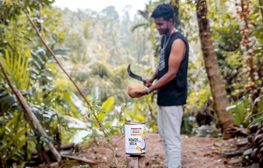 Unsere Verbindung reicht weit zurück! Preetika ist bereits seit 1995 Fairtrade-zertifiziert. „Im Laufe der Jahre haben wir durch die Fairtrade-Prämie Schulbücher für die Kinder bekommen, außerdem verschiedene Werkzeuge für die Feldarbeit, einen Wasserfilter für sauberes Trinkwasser, neue Kokospalmen zur Erneuerung unserer Plantage und viele Schulungen.“, erzählt sie. Und was lernt man da so? „Alles Mögliche!“ Die Berater*innen behandeln aktuelle Themen: „Von der Verbesserung der Bodenqualität über das frühzeitige Erkennen von Palmenkrankheiten bis hin zum Aufbau zusätzlicher Einkommensquellen.“