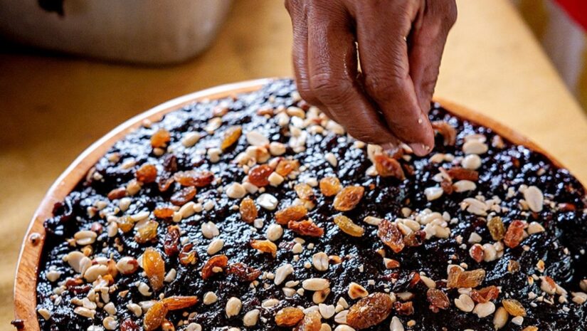 „Du musst ständig weiterrühren, sonst karamellisiert es“, sagt Preetika, während sie in einem großen Topf rührt, der draußen über offenem Feuer köchelt. Im Hintergrund liegt ein Tal voller hoher Kokospalmen. „Später zum Tee könnt ihr probieren, das ist natürlich aus unseren eigenen Kokosnüssen gemacht.“ Preetika stellt gerade Dodol her, ein traditionelles Kokosdessert. Jede Woche produziert sie die süße Leckerei und verkauft sie an Menschen im Dorf und an ein Spezialitätengeschäft. Das Dodol bringt ihr ein zusätzliches Einkommen neben dem, was sie mit ihrer Kokosplantage verdient.