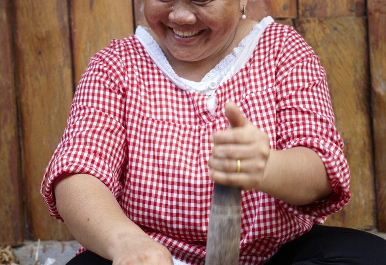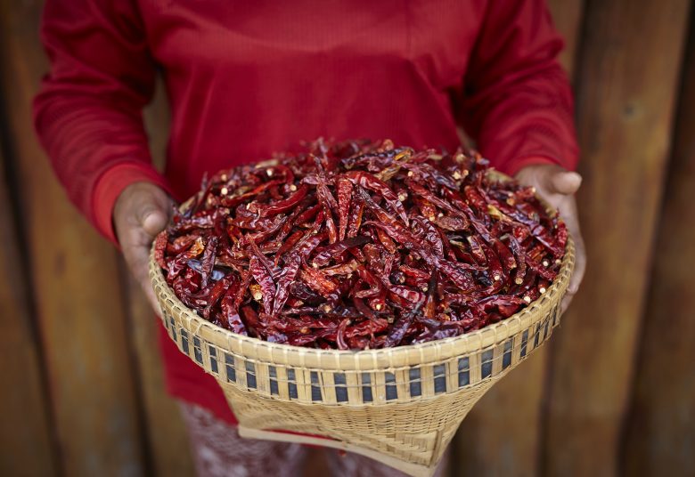 Khun Orapin, unsere Chilibäuerin, pflückt eine rote Chilischote und beißt ab. Sie kaut vorsichtig. Wir sind ganz schön beeindruckt, denn wir wissen aus eigener Erfahrung, dass ihre Chilischoten ziemlich scharf sind. Durch die Mischung mit Rohrzucker und Essig bekommen sie eine angenehme Schärfe. Genau diese Chilischoten verleihen deiner Chilisauce den Geschmack. Nicht nur unfassbar lecker sondern fair produziert!