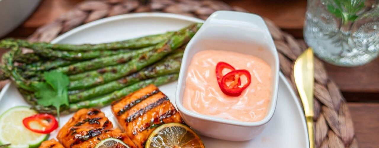 Manchmal braucht es nicht viel – nur das Richtige. Unsere Sriracha Mayo ist der Beweis: Zwei Zutaten, ein großer Effekt. Einfach deine Lieblingsmayo mit unserer Fairtrade Original Sriracha Sauce mischen, kurz verrühren – fertig ist der Dip, der jedem Grillgericht das gewisse Extra verpasst.